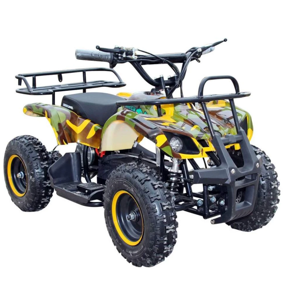 GreenCamel Gobi K200 Армейский желтый – это великолепный квадроцикл подходящий для детей в возрастном диапазоне от трёх до семи лет. Он способен выдержать вес до шестидесяти килограмм. Снабжён дисковыми механическими тормозами, которые установлены на все колёса. GreenCamel Gobi K200 также не страшен дождь – его электроника прекрасно защищена от попадания в неё влаги. Экологически чистый электромтор безопасный для природы и вашего ребёнка, способен разгонять квадроцикл до скорости в 20 км/ч. Подзарядив батарею на сто процентов (потребуется примерно восемь часов) ваш ребёнок сможет проехать на квадроцикле до двадцати километров.