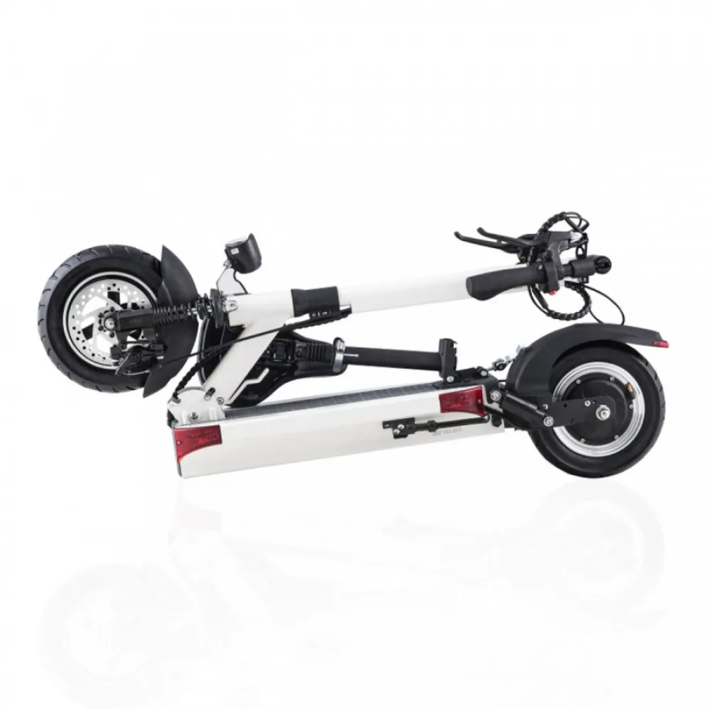 Максимально допустимая нагрузка на электросамокат составляет 120 кг, а вес самого устройства – 23 кг. Складная конструкция позволит легко разместить его дома для удобства и компактности хранения, а также при перевозке в автомобиле или в общественном транспорте.