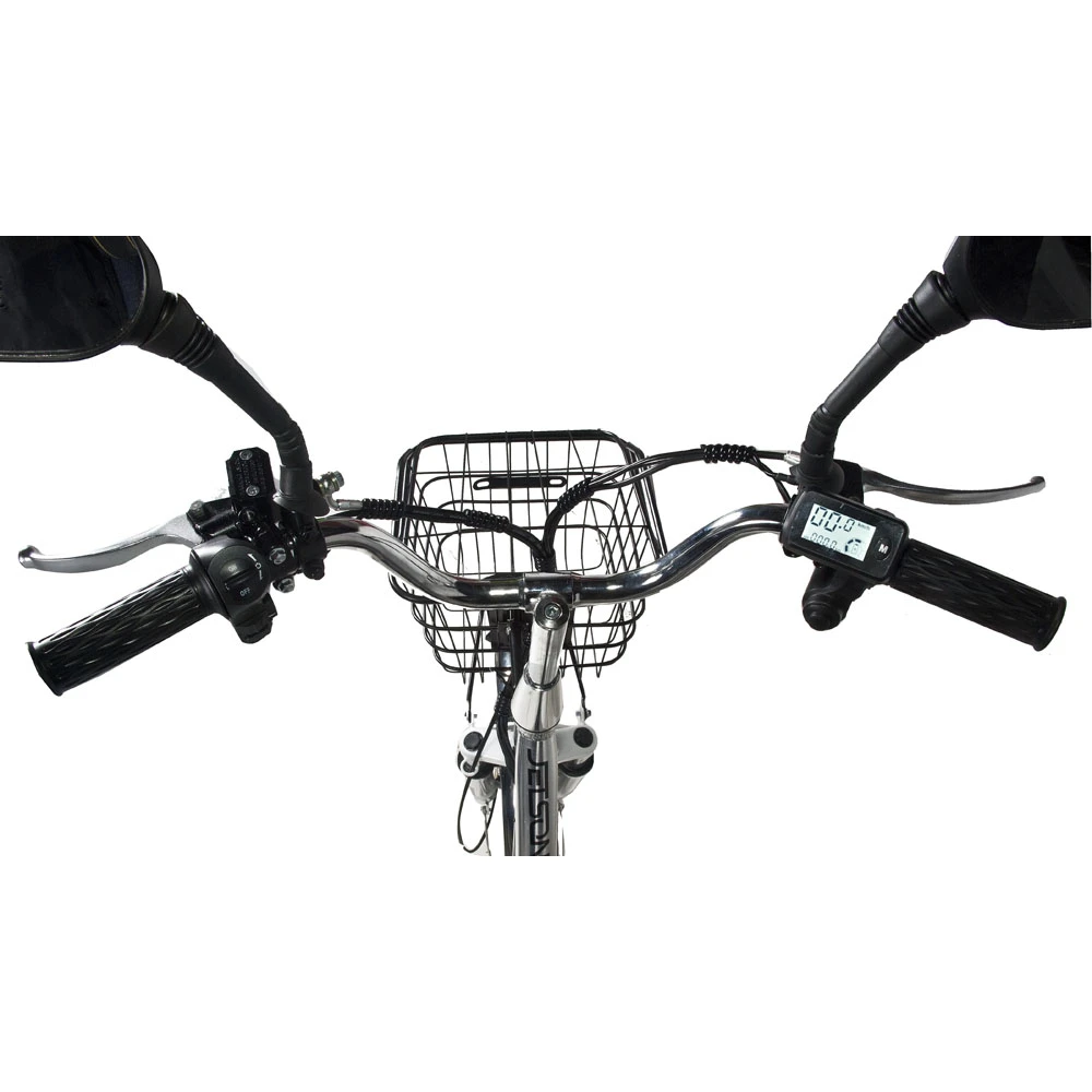 Велосипед Jetson Pro Max с электроприводом является непревзойдённой заменой личного и общественного транспорта. Его компактность и манёвренность позволяют с комфортом использовать его на самых загруженных улицах города, без особых проблем перевозить в транспорте, если понадобится, и хранить так, чтобы никогда не мешался. Алюминиевая рама велосипеда легкая и прочная. Она выдерживает до 200 килограмм, что позволяет перевозить пассажира и любые вещи, которые поместятся в корзину.