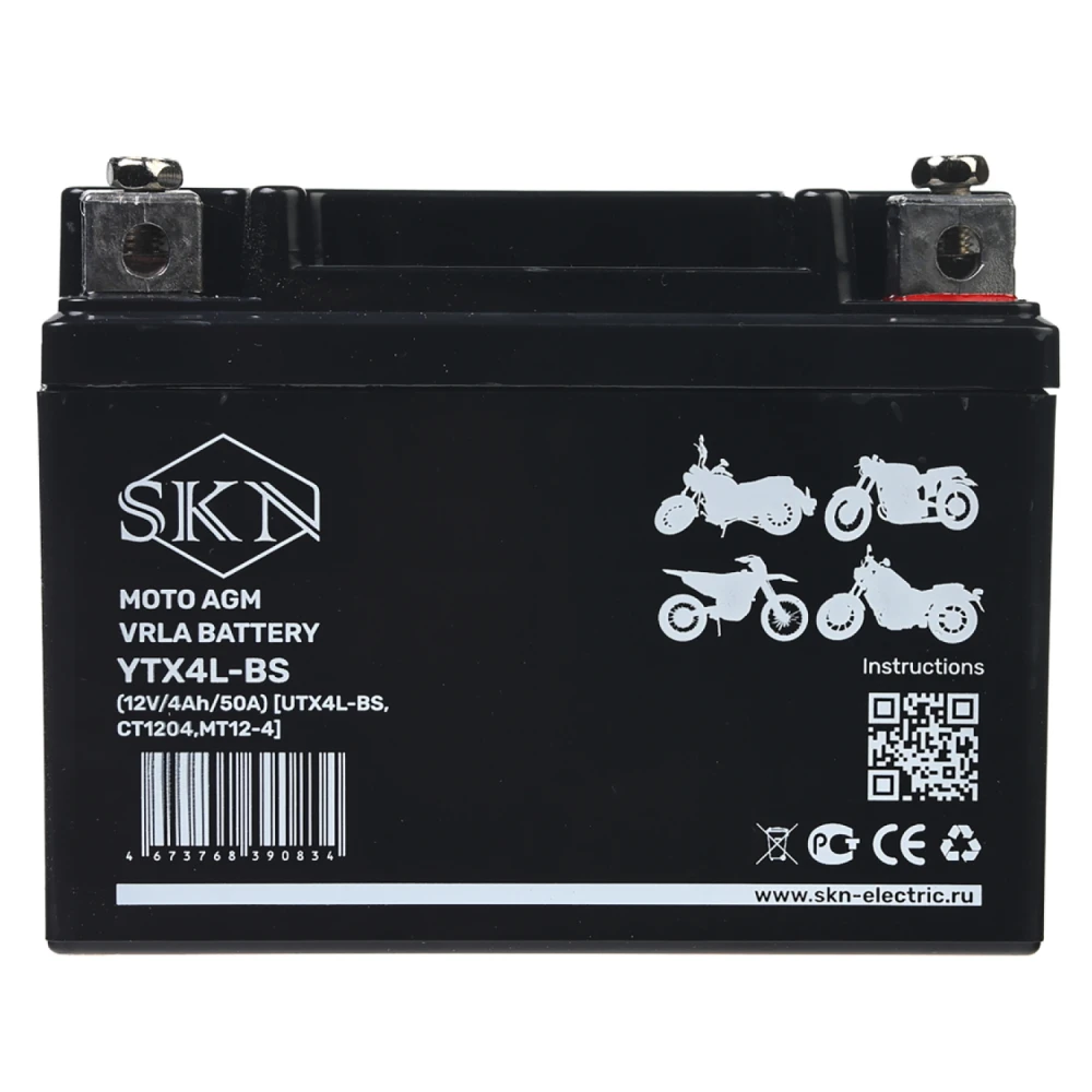 Аккумулятор стартерный для мототехники SKN YTX4L-BS (12V/4Ah/50A) [UTX4L-BS, CT 1204, MT 12-4]